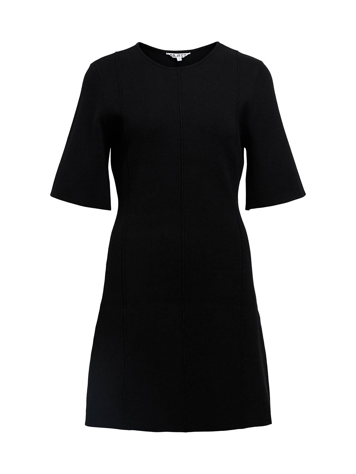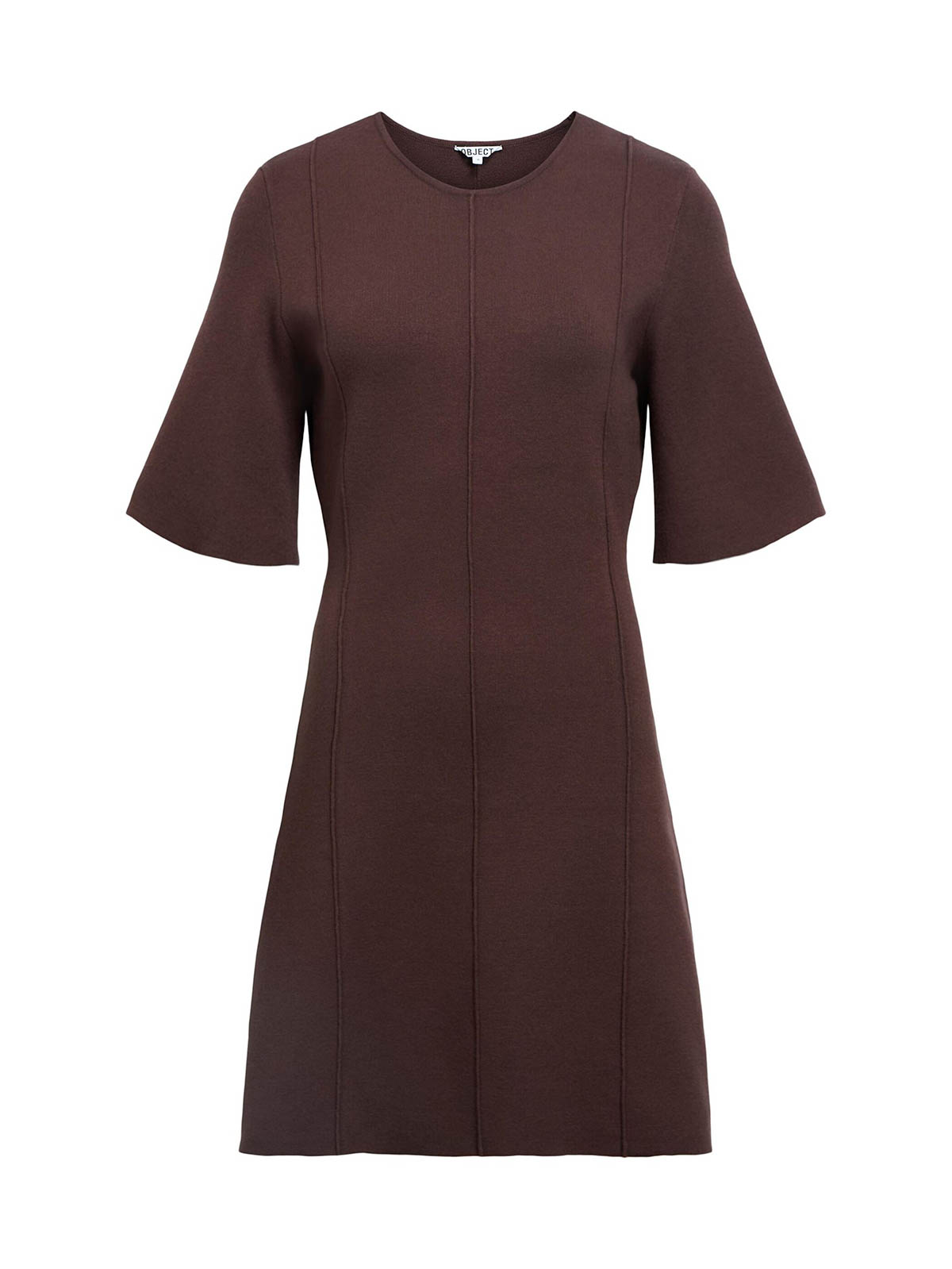 Vestido corto de punto en tejido mezcla viscosa.Cuello redondo. Manga corta ligeramente holgada.Diseñado para llevar ajustado.