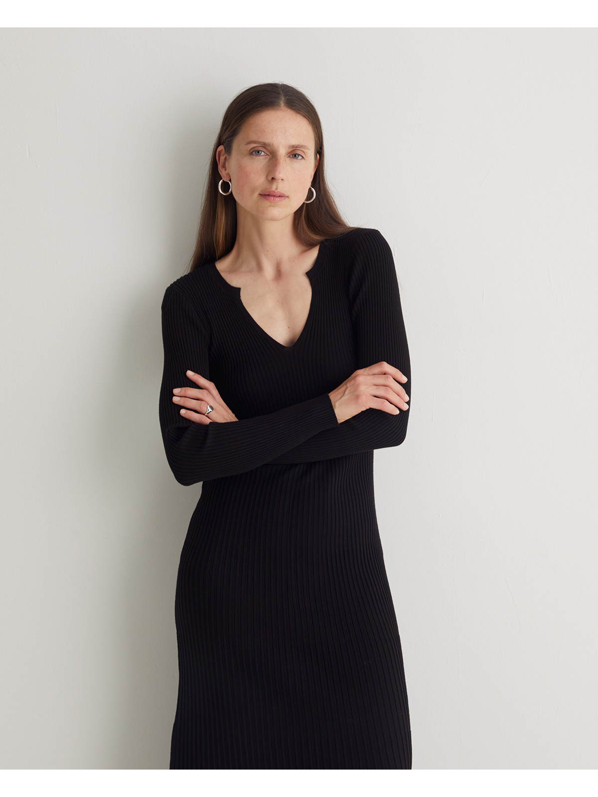 Vestido midi en tejido mezcla de viscosa. Cuello tunecino. Manga larga. Diseñado para llevar un fit ajustado.