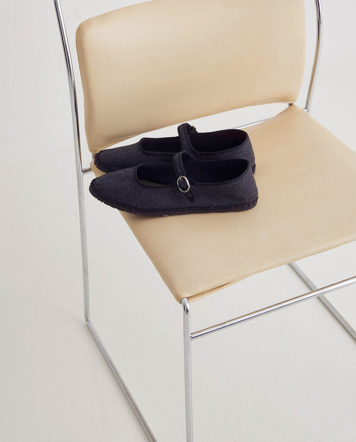 Zapato tipo bailarina en tejido terciopelo de algodón.Acabado en punta redonda. Cierre con tira y hebilla lateral. Ribete en contraste de color negro.