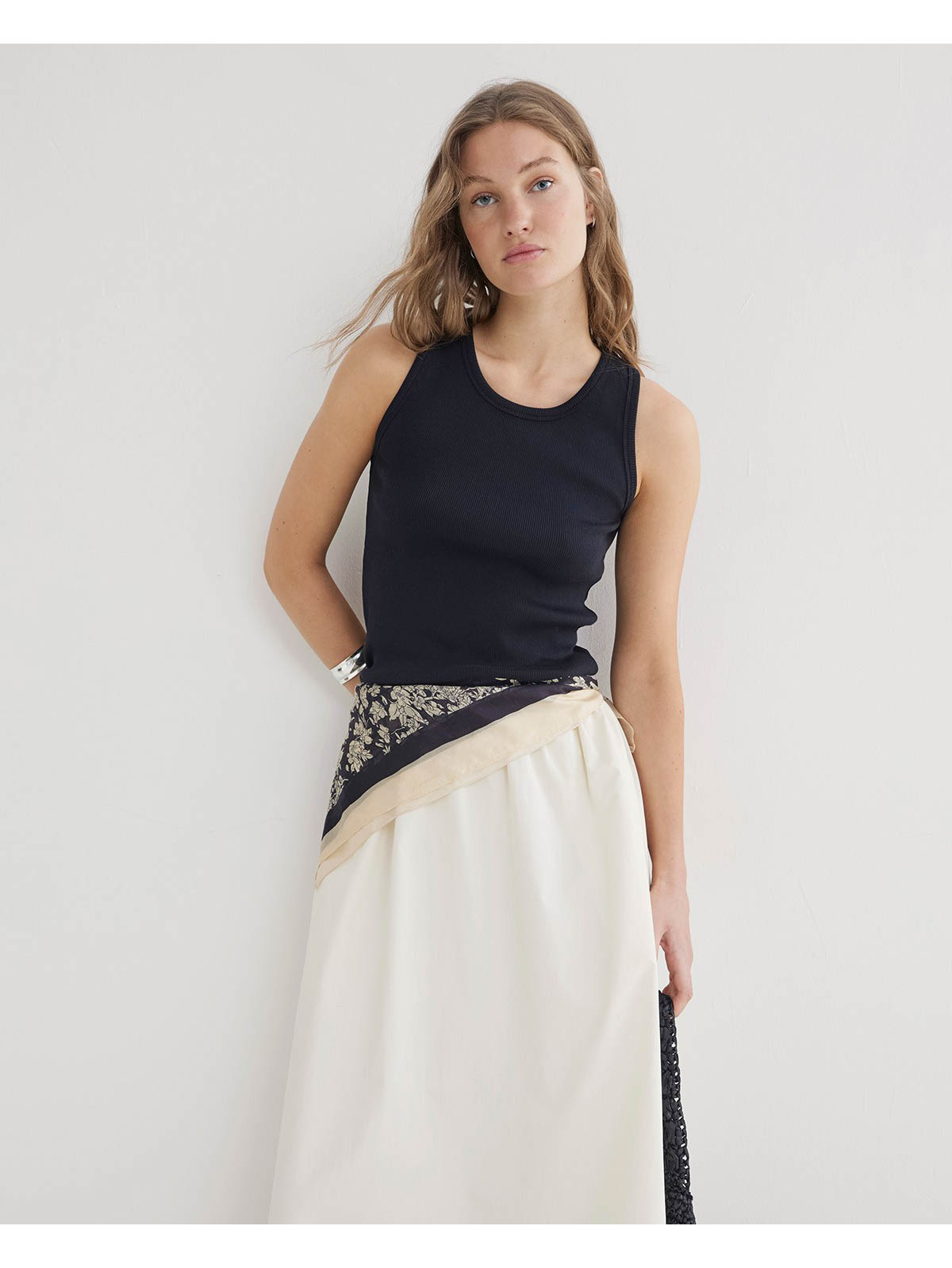 Cinturón combinado en piel y tejido elástico. Hebilla