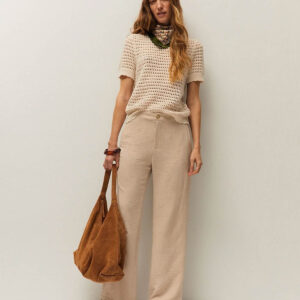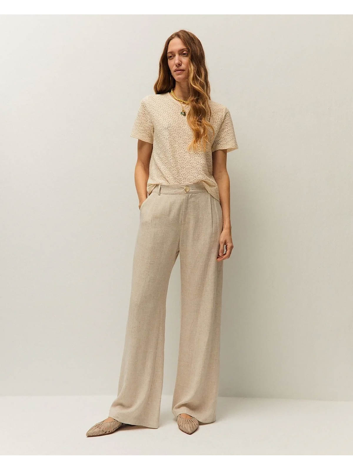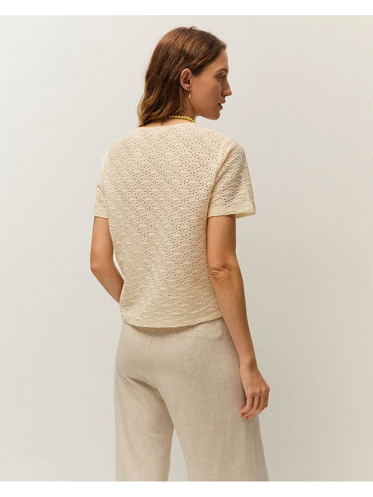 Camiseta de manga corta calada en tejido mezcla de algodón.
