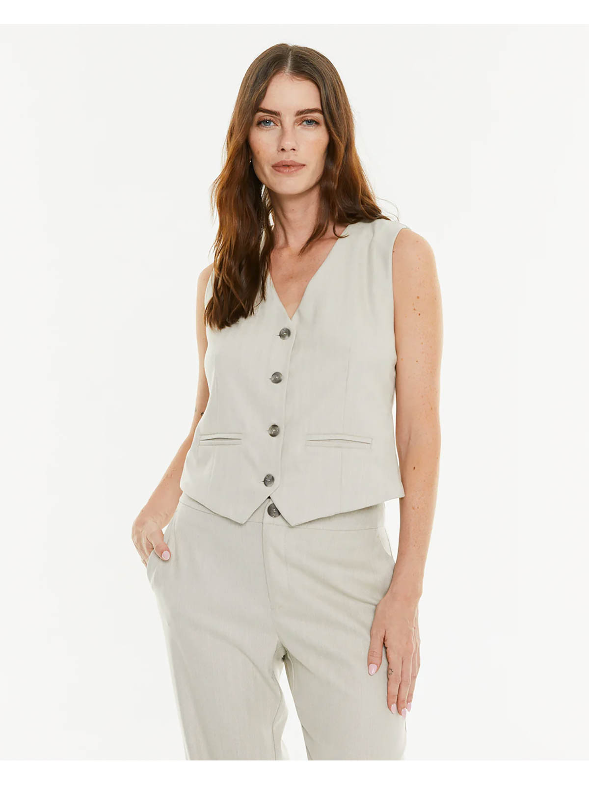 Cierre con botones.Corte recto. Costuras de pinza.