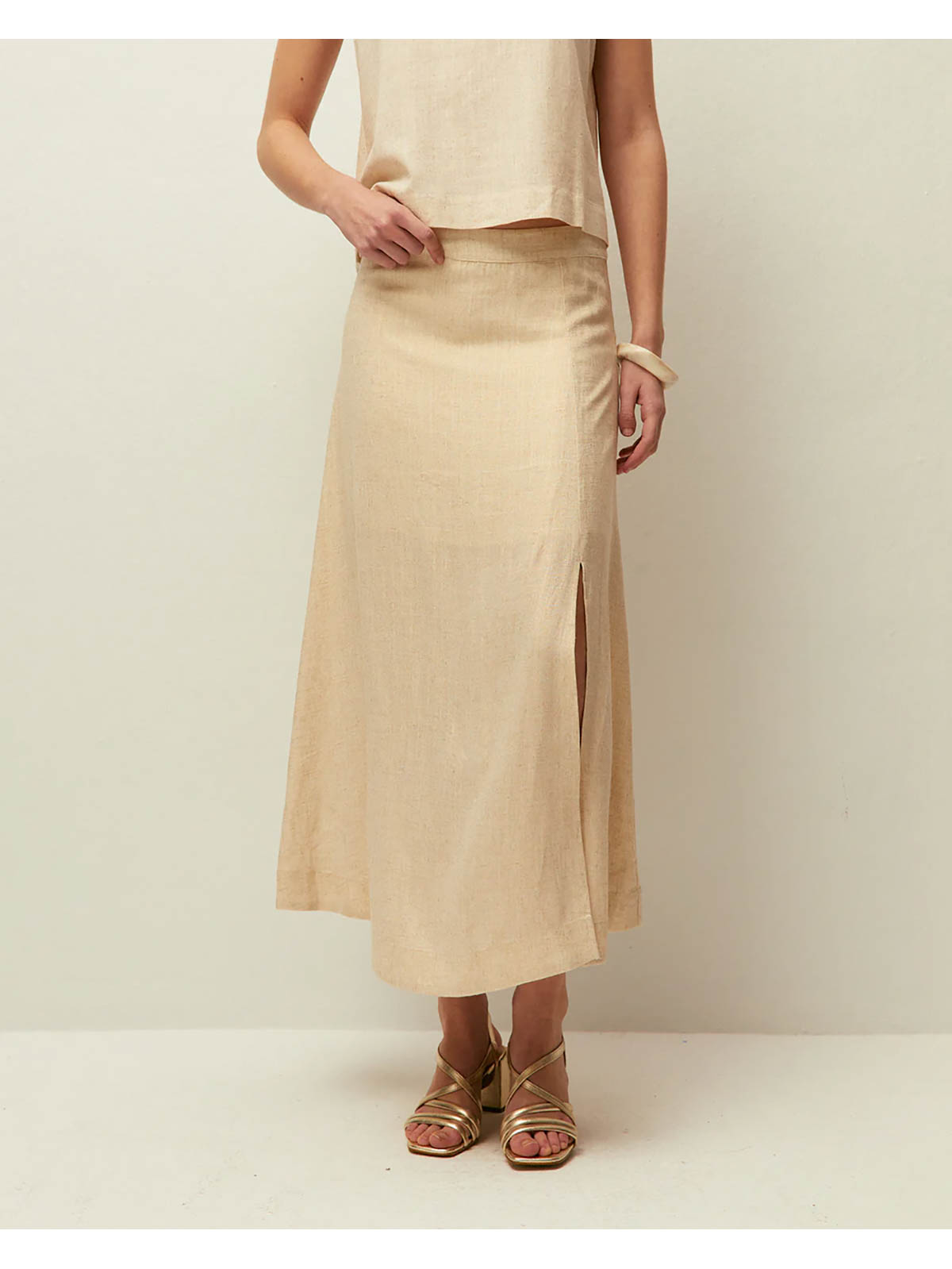 Falda midi lurex crudo