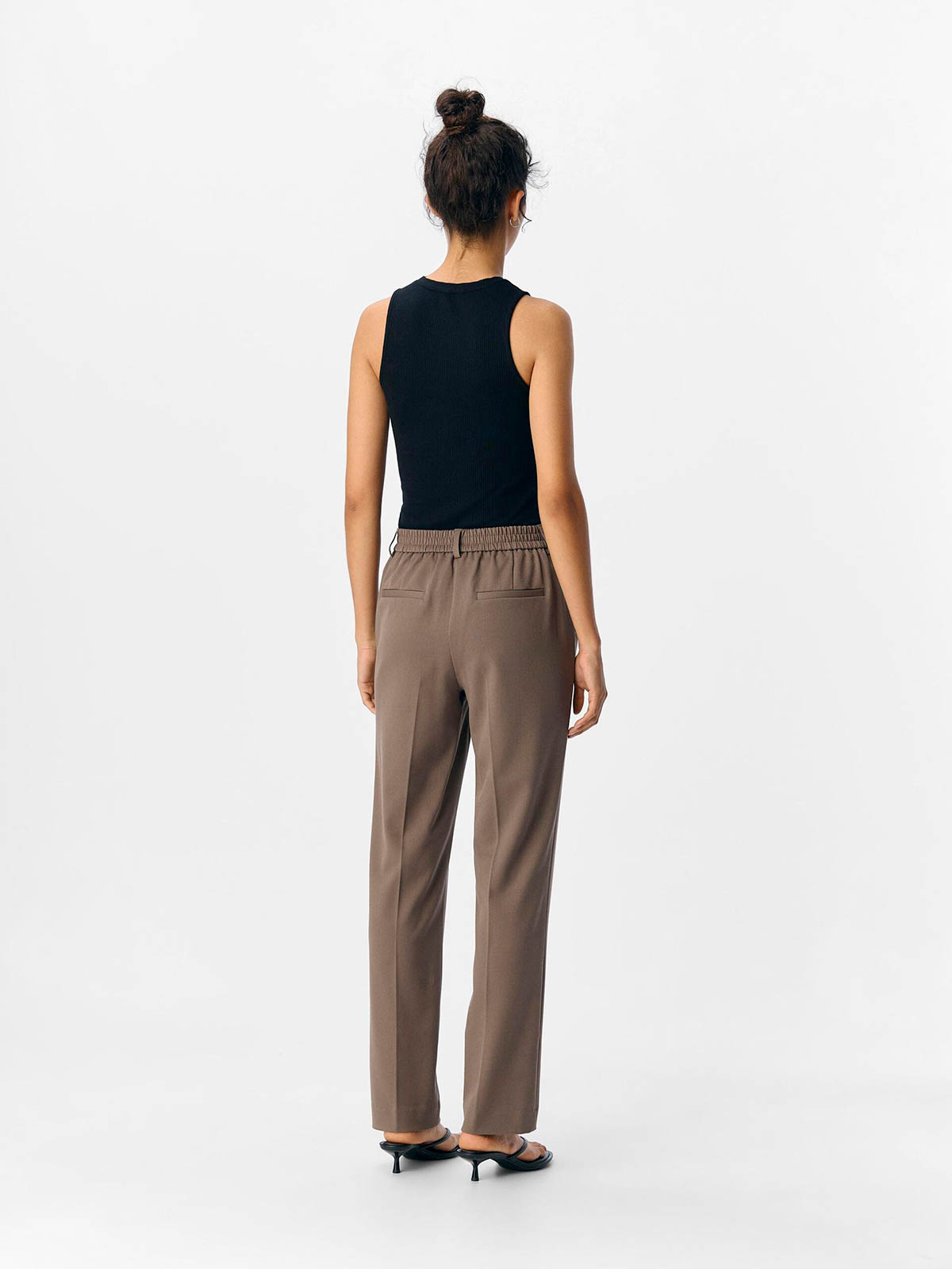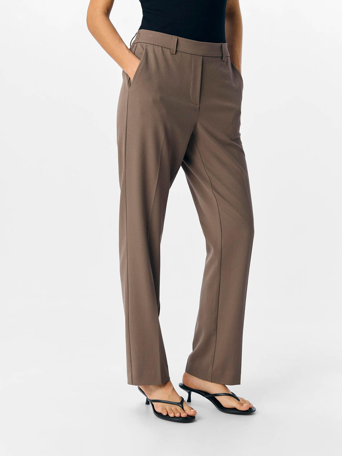 Pantalones de pierna recta en tejido mezcla de viscosa. Cintura media